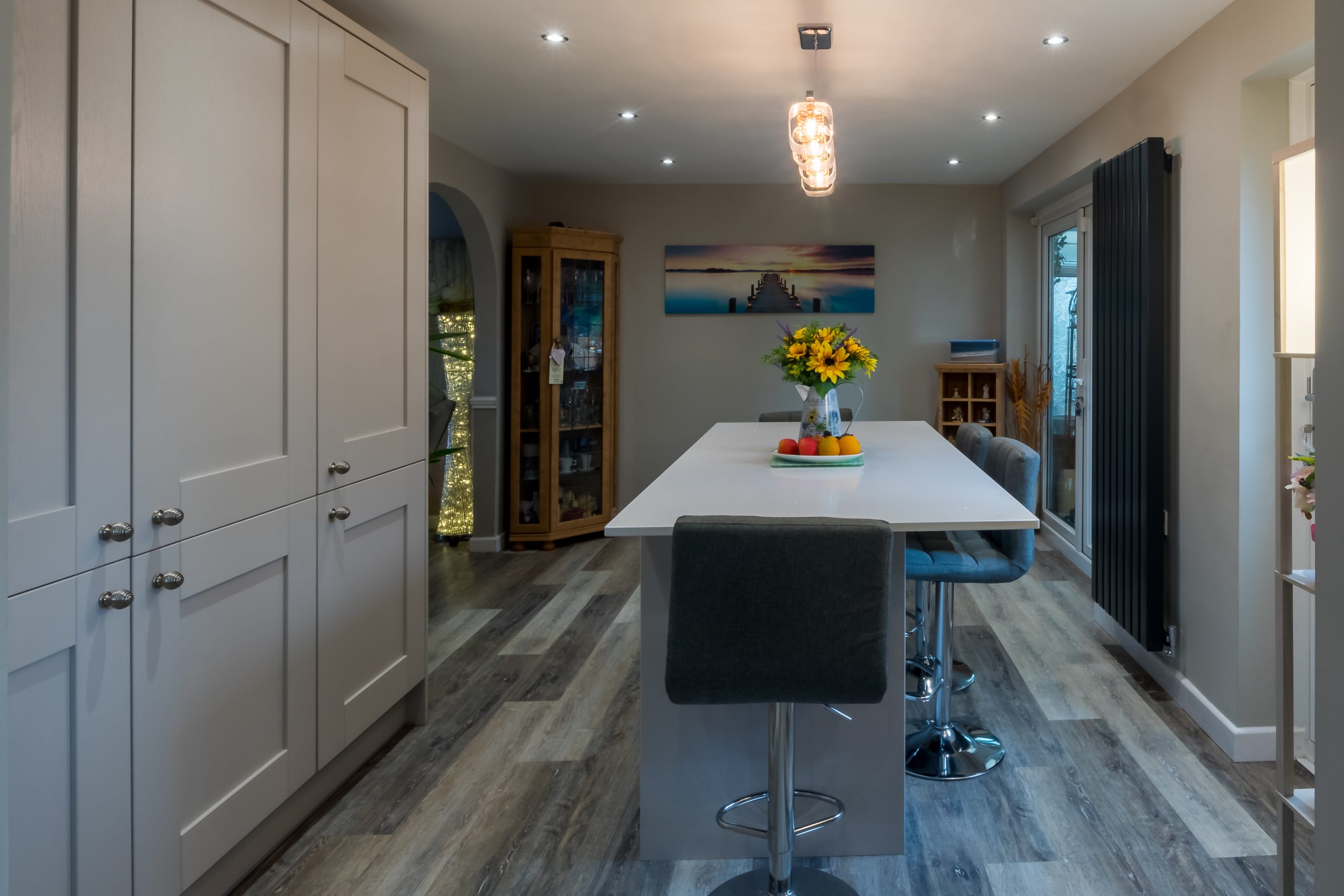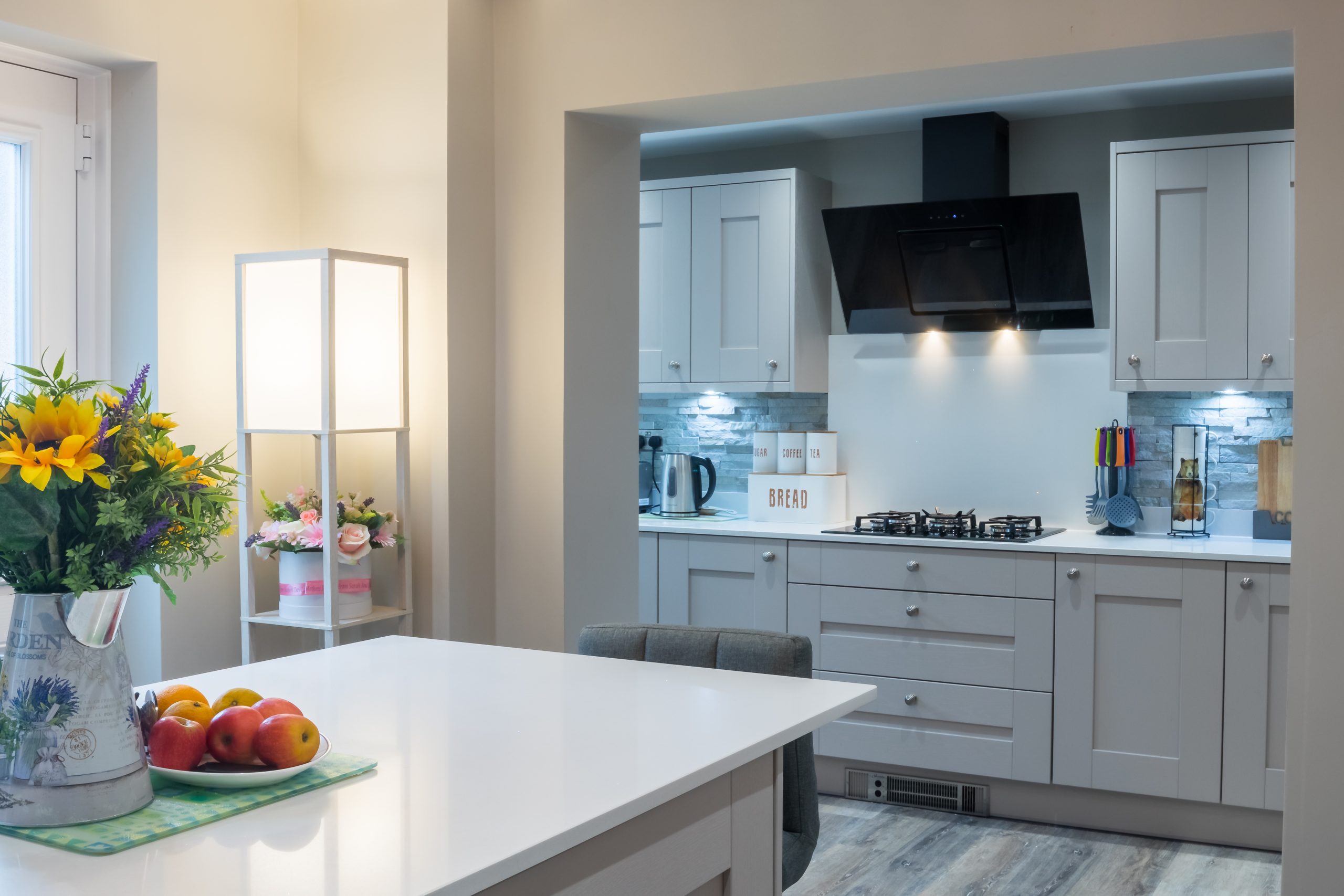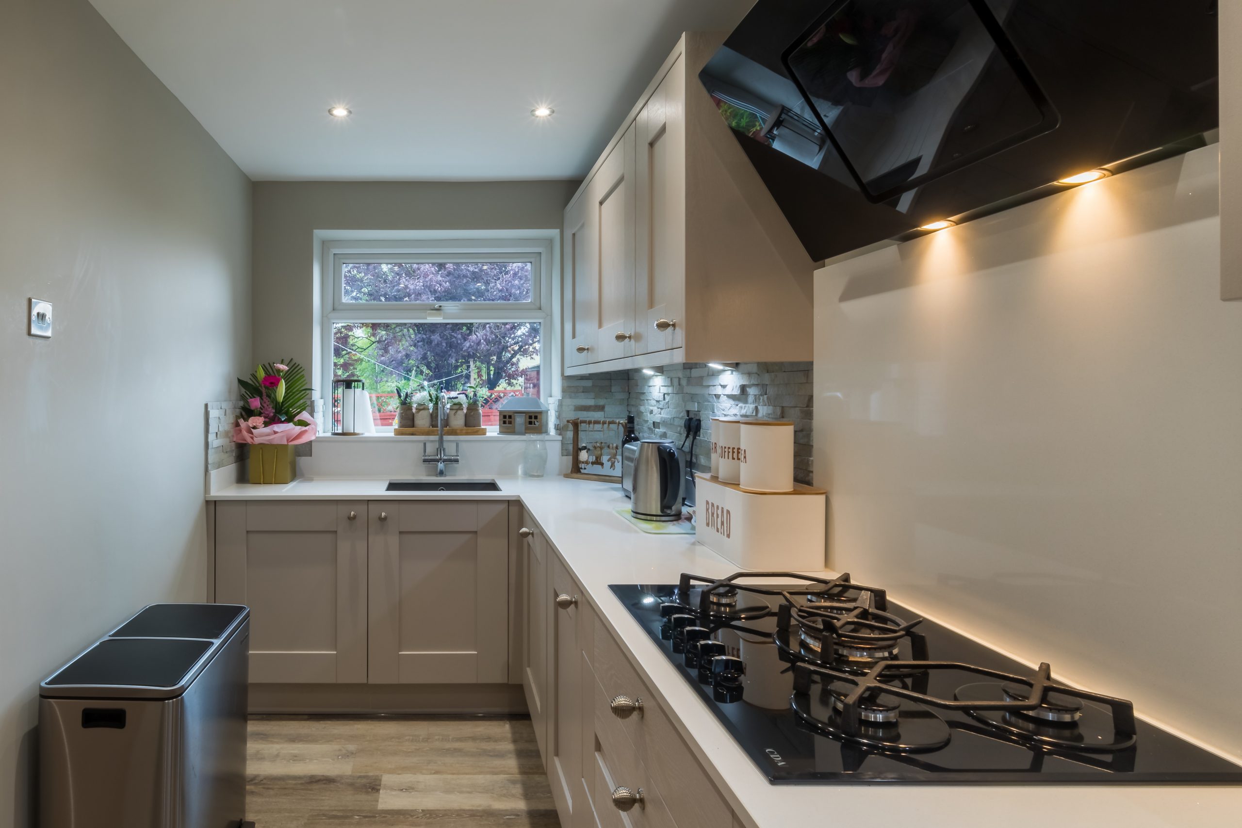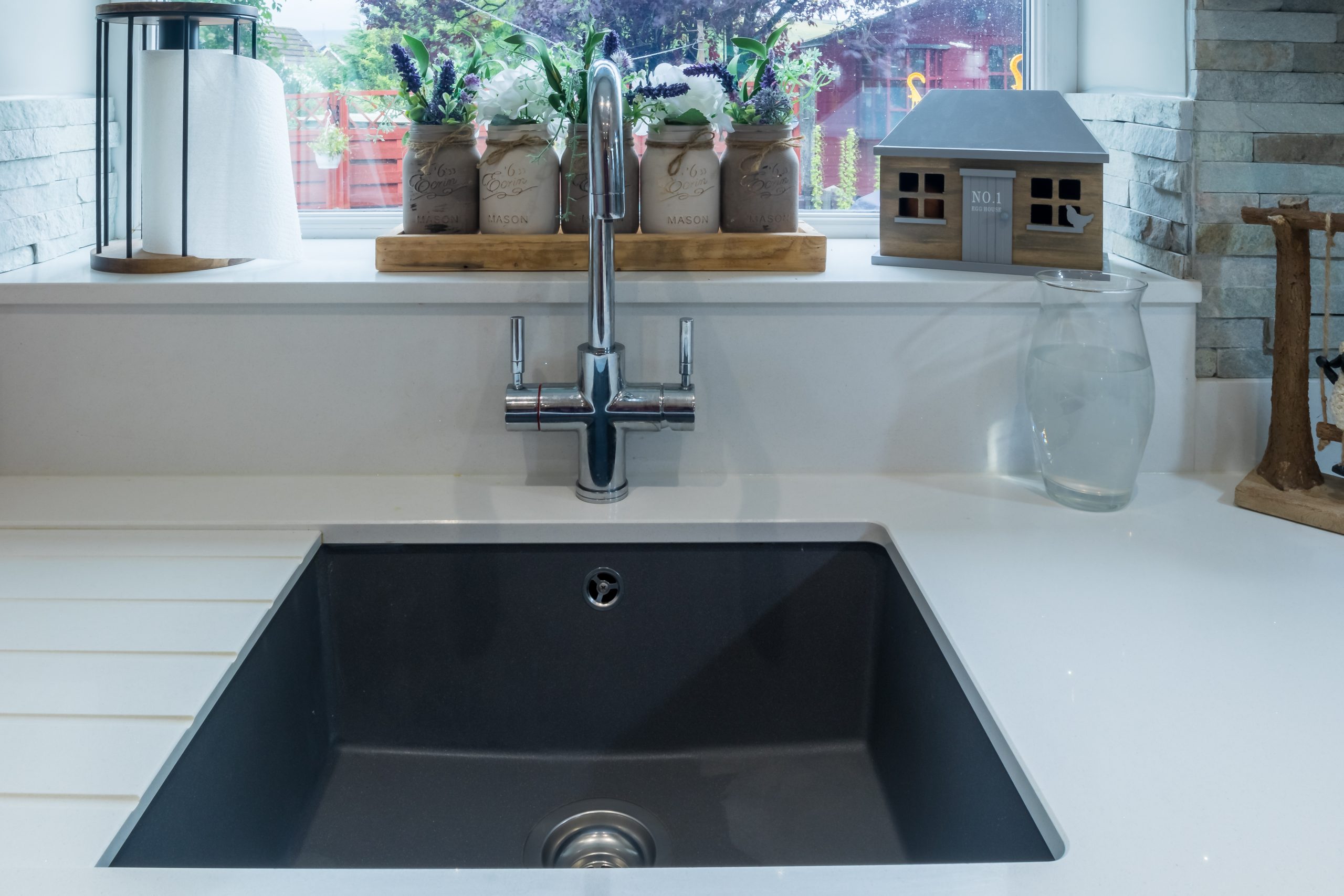 – (Quartz: worktops, Island, upstands, hob splashback, recess drainer)